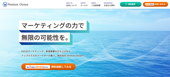 株式会社Venture Oceanは、新規事業やD2Cに特化したマーケティングコンサル会社です。